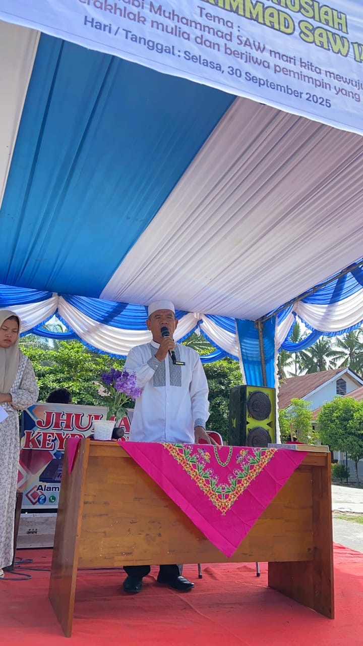 Sementara ustadz kondang Mahmud Yunus Daulay, MA dalam tausiahnya mengajak para hadirin dan undangan untuk dapat kiranya mewujudkan pemimpin generasi penerus bangsa yang memiliki moral terpuji dan berakhlak mulia seperti halnya yang dimiliki oleh junjungan kita Nabi besar Muhammad SAW yang selalu kita mengharapkan safa’atnya di hari kemudian hari papar ustadz Daulay.