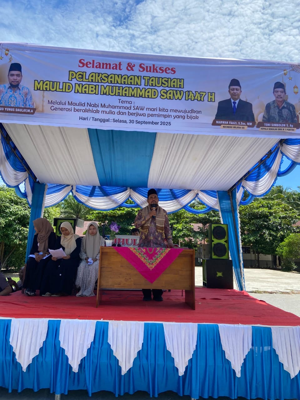 Paluta – Tuntas News – Keluarga Besar SMA Negeri 1 Portibi Kabupaten Padang Lawas Utara memperingati Maulid Nabi Muhammad SAW 1447 Hijriyah yang berlangsung dengan khidmat di lapangan upacara sekolah yang bersangkuta belum lama ini.