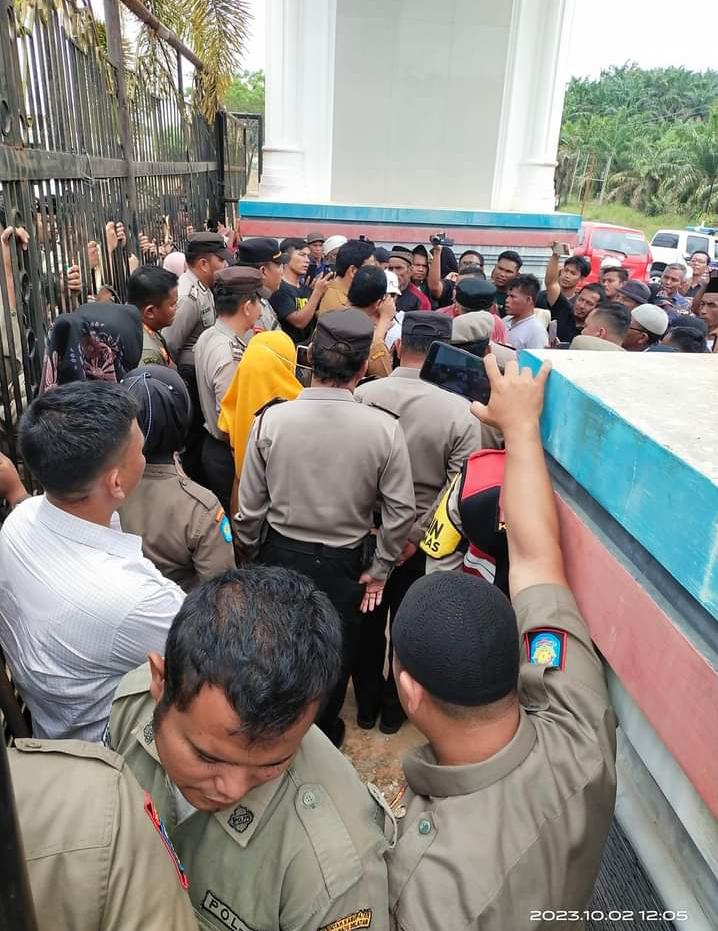 Labusel – Unjuk rasa Masyarakat Tanjung Marulak di depan kantor Bupati Labuhan Batu Selatan hari ini Selasa,2/10/2023 menyebabkan kemacetan lalu lintas di sekitar jalan lintas Sosopan yang berlokasi di depan pintu gerbang kantor Bupati. Kepolisian Polres Labuhanbatu Selatan dan Satpol PP siap untuk mengendalikan situasi.