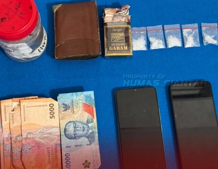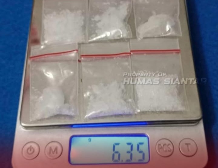 Total barang yang di amankan 6 paket dengan berat bruto 6,35 gram dan uang Rp. 80.000