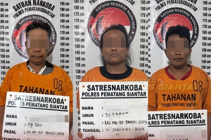 Kapolres Kota Pematangsiantar, AKBP Yogen Heroes Baruno SH. SIK, melalui Kasat Resnarkoba, AKP. Jhony Pasaribu SH, MH, dalam keterangannya pada hari Selasa, (14/01/2025) mengatakan, ke tiga tersangka berinisial AS warga jalan D.I Panjaitan, Kelurahan Nagahuta, Kecamatan Siantar Marihat, Kota Pematangsiantar, HS warga jalan Sisingamangaraja kelurahan Sukadame Kecamatan Siantar Utara, Kota Pematangsiantar dan TSS warga jalan Sidomulyo Gang Horas, Kelurahan Nagapita, Kecamatan Siantar Martoba, Kota Pematangsiantar.
