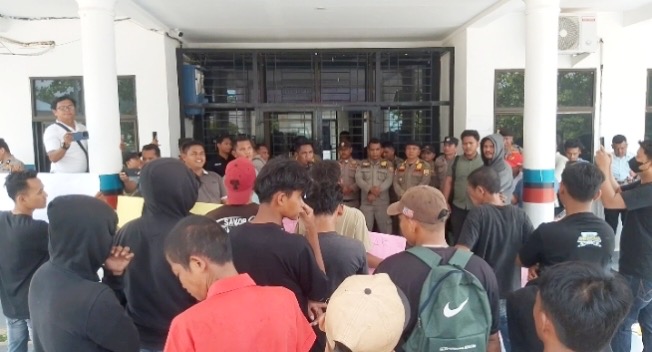 Aksi ini berlangsung dengan pengawalan ketat dari petugas Satuan Polisi Pamong Praja (Satpol PP) dan personel dari Polres Labuhanbatu Selatan. Massa aksi tampak membawa poster dan spanduk yang berisi berbagai tuntutan terkait dugaan tindak pidana korupsi dalam pengadaan buku pelajaran sekolah dasar pada tahun anggaran 2024.