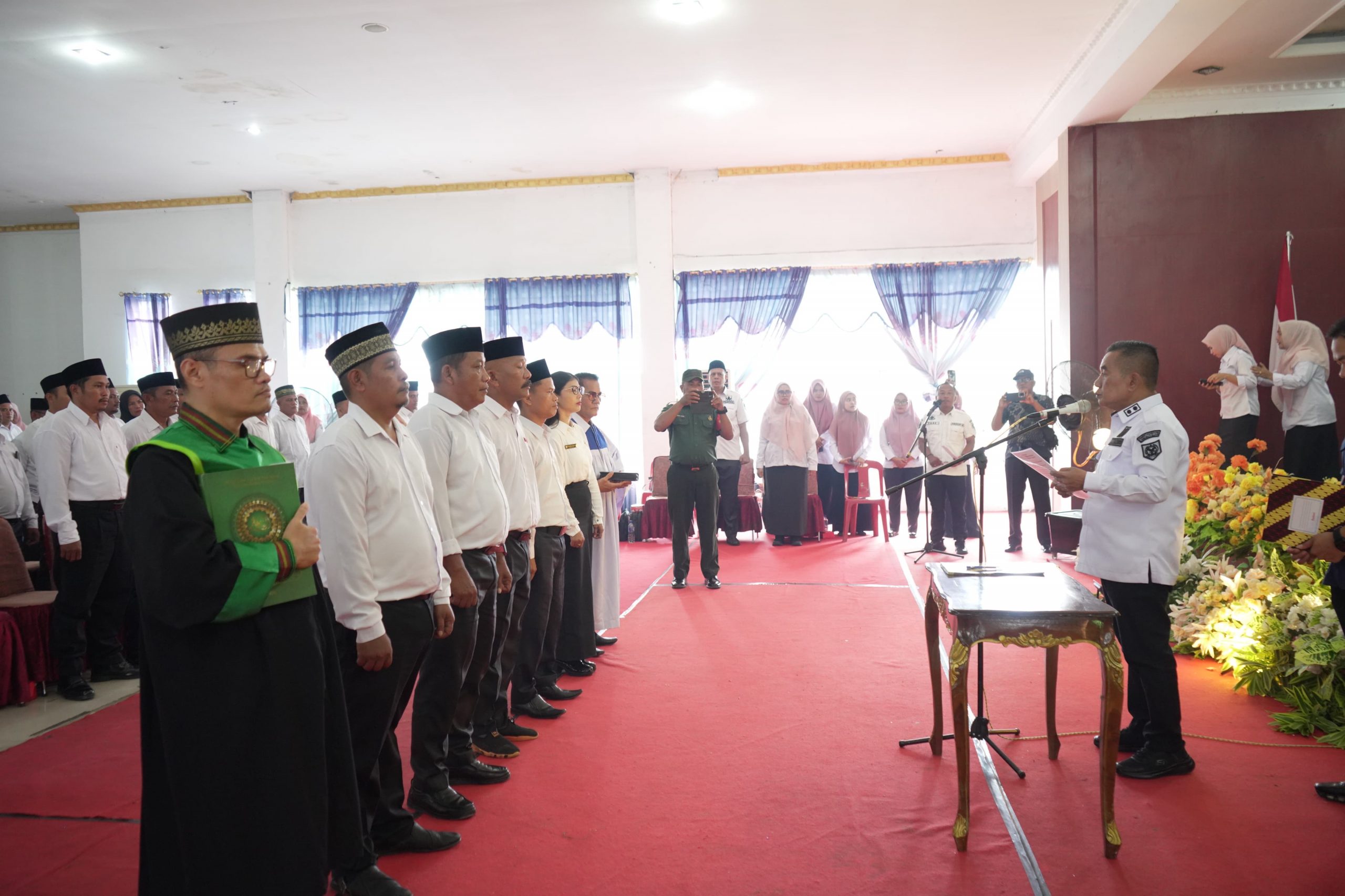 Usai pengambilan sumpah jabatan, acara dilanjutkan dengan pembacaan doa oleh Al-Ustadz Mukti Ali, S.Pd. Suasana penuh khidmat dan haru mewarnai prosesi tersebut, menandakan kesungguhan seluruh peserta dalam mengemban amanah baru.