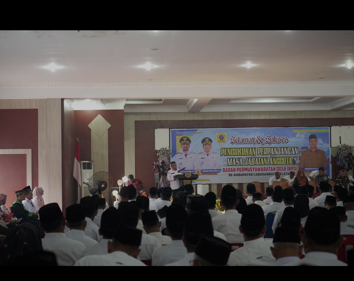 Labuhanbatu Selatan,Tuntasnews.net – Pemerintah Kabupaten Labuhanbatu Selatan melalui Dinas Pemberdayaan Masyarakat dan Desa (PMD) secara resmi menggelar acara Pengukuhan Perpanjangan Masa Jabatan Anggota Badan Permusyawaratan Desa (BPD) Se-Kabupaten Labuhanbatu Selatan untuk periode tahun 2025–2027. Kegiatan tersebut berlangsung khidmat di Aula Pendopo Santun Berkata Bijak Berkarya (SBBK), Kotapinang, Kabupaten Labuhanbatu Selatan, Sumatera Utara, pada Rabu (12/11/2025).