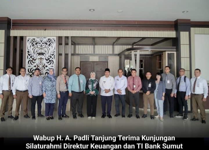 Labuhanbatu Selatan – Wakil Bupati Labuhanbatu Selatan (Labusel) H. Ahmad Padli Tanjung, S.Ag menerima kunjungan silaturahmi Direktur Keuangan dan TI Bank Sumut Arieta Ariayanti di ruang Rapat Wakil Bupati, Rabu (22/5/2024).
