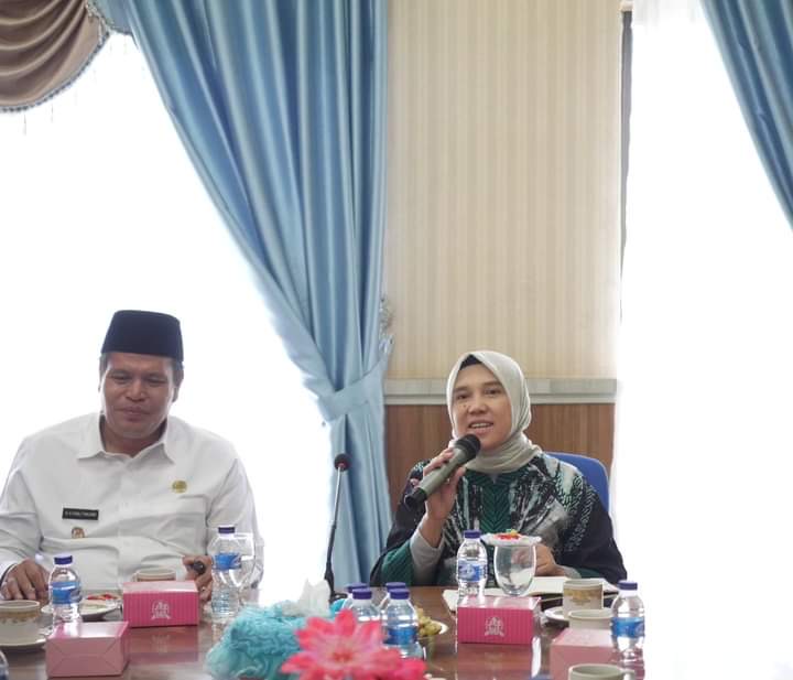 Wabup menyambut dengan hangat dan mengucapkan selamat datang kepada Direktur Keuangan dan TI Bank Sumut Arieta Ariayanti beserta rombongan di Bumi Santun Berkata Bijak Berkarya.