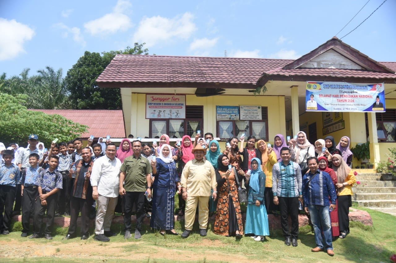 TAPANULI SELATAN – Bupati Tapanuli Selatan (Tapsel) Dolly Pasaribu berkunjung dan bertemu langsung dengan siswa-siswi SMPN 3 Garonggang, Kecamatan Angkola Selatan, Kamis (27/6).
