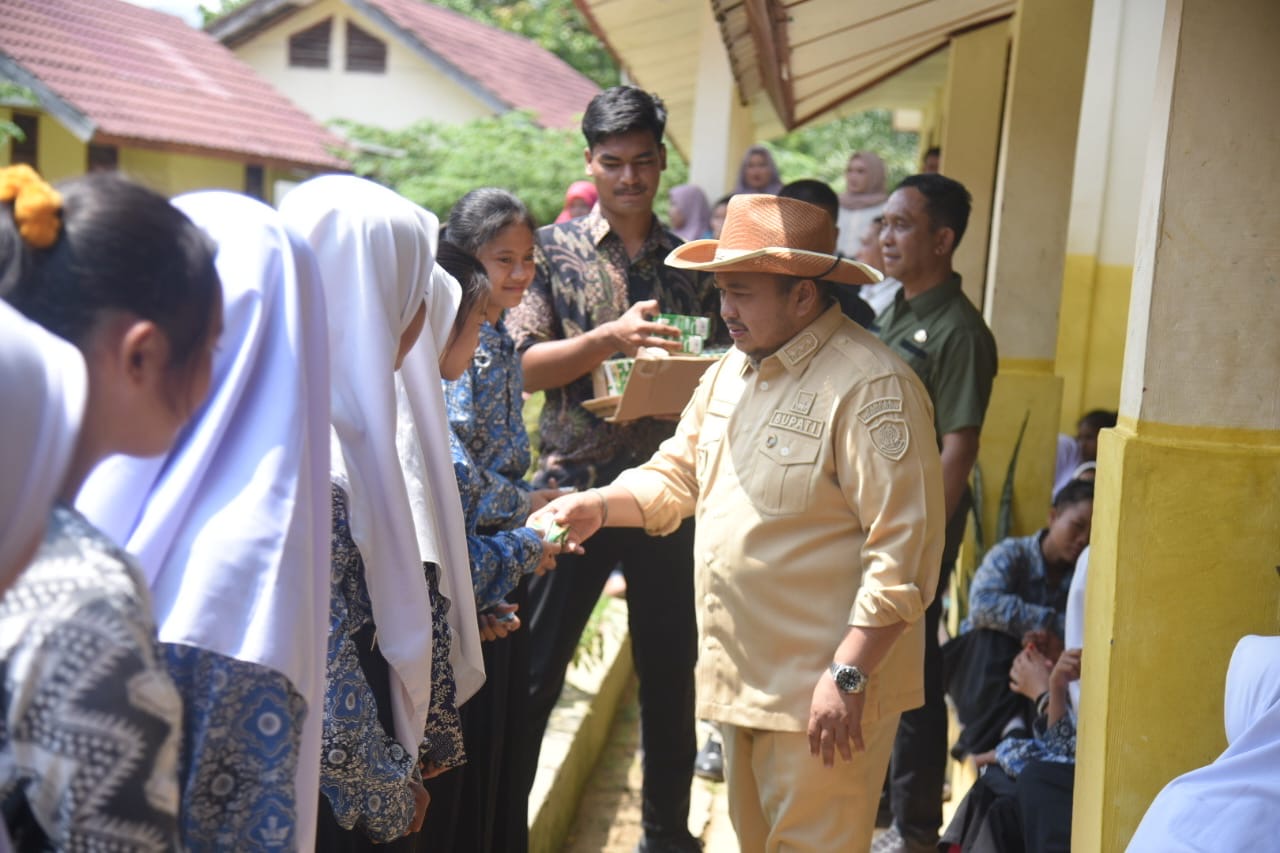 Sebagai upaya mendorong semangat belajar para siswa, Bupati membagikan susu kepada para siswa dan memberikan apresiasi kepada para siswa yang mendapat juara di kelas.